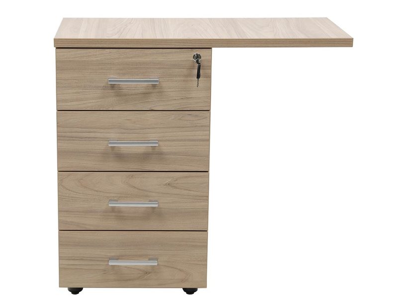 - тумба снабжена центральным замком и оснащена пластмассовым лотком для канцелярских принадлежностей в верхнем ящике
